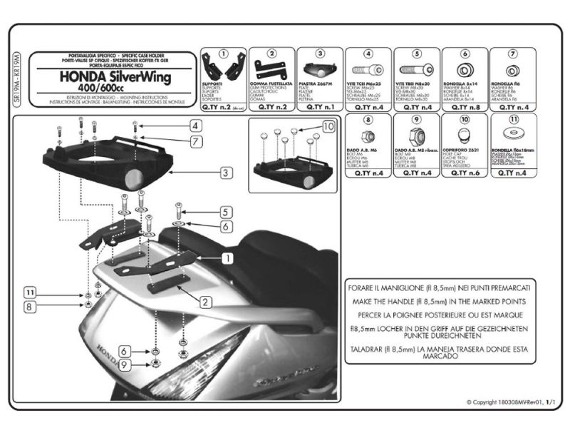 GIVI Monolock SR Bagagerek Honda SW-T 400 (2009-) Silver Wing 400 / 600 (2001-2009)